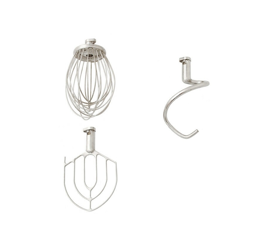 Standard equipment: stainless steel kneading arm, stainless steel cream padle, stainless steel whisk